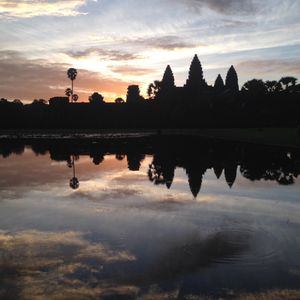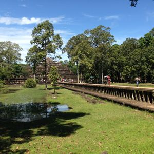 時期は雨季ということで、早朝から大雨でアンコールワット朝日鑑賞がとても心配でしたが、曇っていたため、朝日は見れなかったものの、雨が止んでくれたおかげで、水辺に映るアンコールワットは鑑賞することができました。幻想的で言葉に表すことのできない感動を味わうことができました。
