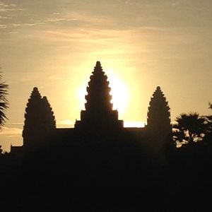 このツアーではタイトル通り、日の出から始まり夕日、そしてアブサラショーと朝から晩まで本当に凝縮されたツアーでした。自分達で見るのも楽しいですがガイドさんにひとつひとつ説明してもらいながら回るツアーは遺跡の背景まで詳しく知ることができ、深く理解することができます!ガイドさんも日本語がとても上手で、さらに写真もたくさん撮ってくれます(*^^*)夜ご飯はカンボジア料理のバイキングで全てとても美味しく、アブサラショーも普通はお金を払わないと見られないものなのでそれをご飯をたべながら見られるのは最高でした(*^^*)残念なポイントとしては旅行時期が雨季であったため日の出と日の入が雲のために見ることができず、また9月とはいえまだまだ熱く、一日中遺跡を回り続けるのはかなりしんどいなと感じました。また、回ることのできる遺跡もあらかじめ決められているのでツアーに入っていない遺跡をみたいと思っても見ることができませんでした。拝観はアンコール遺跡群を全て見られる拝観券なので自由時間が、あれば自由時間なのかなと思いました。
