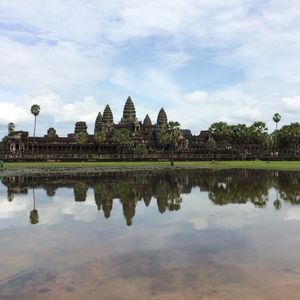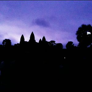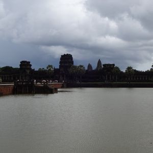 そしていざ、アンコルワットへ。しかし残念ながらの曇り空ではありましたが、雲の隙間から少し朝日が見えてすごく幻想的でキレイでした。