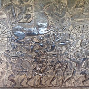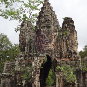 そしてそこからアンコールトムへ。ガイドさんがいろいろ説明してくれます。雨季だけあって急に土砂降りの雨にあい一旦休憩。今の時期は朝、午後1度は雨が降るとか。雨具は必須でした。