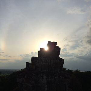 そしてアンコールワットの裏から出て、いざ夕日鑑賞。朝日から始まり夕日まで非常に豪華です。プノンバケンは少々(10-15分程)山登りで息が切れますが、楽しいです。ガイドさんはプノンバケンの遺跡には一緒に登らず、山の下での待ち合わせ。遺跡は夕日待ちの観光客でいっぱいでした。夕日の反対の空にダブルレインボーを見るこが出来、とてもキレイでした。。っが、残念なことに夕日の方は流れの早い雨雲に途中から隠れてしまい見ることが出来ませんでした。雨の気配がしたので急いでガイドさんとの待ち合わせの山の麓へ下山。土砂降りに会わずにすみました。っが、早く車に戻りたかったのですが、他の方々がまだ上にいるということから、しばらく待ちでした。スカーフやらいろいろ売ってくる女の子達に囲まれ、断るのが少々申し訳なくなりました。一緒の方で買ってあげてた方もいました。