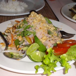 お昼は雰囲気のよいレストランで、クメール麺に何品かの料理とデザートも付いて満腹です。