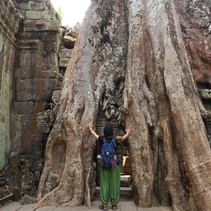 ガイドさんが写真のベストスポットをたくさん教えてくれました。更にガイドさんがカメラ好きらしく、友人と腕で輪を作った中にアンコールワットが入り込んだ写真を遠近法で撮ってくれたり、iphoneの内カメラを地面に置いてそれを覗いたような写真を撮ってくれたりと普通の写真とは一味違った写真撮影をしてくれてとても嬉しかったです。周りの観光客も私たちのまねをしていました(笑)