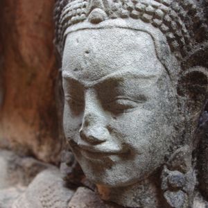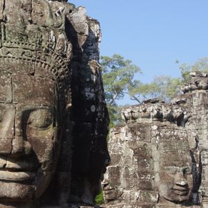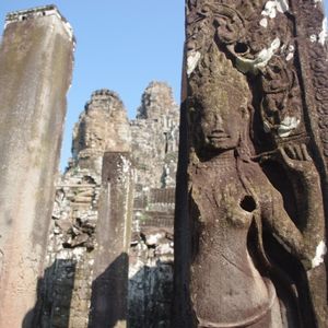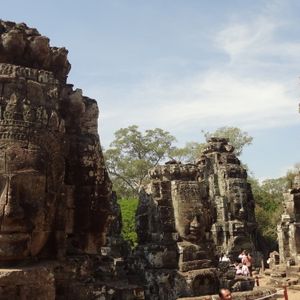 最初のアンコールトムの南の門もところで、まず感動。乳海攪拌の話をガイドさんから聞いて、「ああ、やっぱりヒンズー教は面白いな」と。さらに寺院に入り沢山のお釈迦様の顔、顔、顔。噂のアルカイックスマイルとはこのことかと、まじかで観ることができて本当に感動しました。寺院の入り口あたりには、いくつかいい状態で残っている彫刻や面白い壁の彫刻などガイドさんが説明してくれてとても興味深かったです。最後のライ王のテラスの回廊にほられている彫刻は、シェムリアップでみた中で一番印象深い美しいものでした。