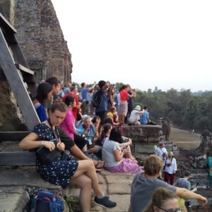 2.その朝日のツアーですが、5:40頃に朝日のアンコールワットを見る敷地内に着いたのですが、ガイドさんが「6:40頃から朝日が出るので6:30にここに来てくださいそれまでは適当に自由に見てください」といわれましたが、明らかに朝日鑑賞のポイントは2か所(入り口を入ったところか、逆さ寺院が映る池のほとり)で、6:00頃にはすでにその2か所には人だかりができていて、その上そのガイドさんは6:20頃に集合場所にいなかったため、一緒に参加した2人の方(私を入れて3人)で自分たちで何とか鑑賞場所確保しました。何のためのガイドですか?しかもその近くに昼からのツアーでは立ち寄らない重要な4mビシュヌ神もあり、教えてくれたら十分な時間があったのに…改善希望