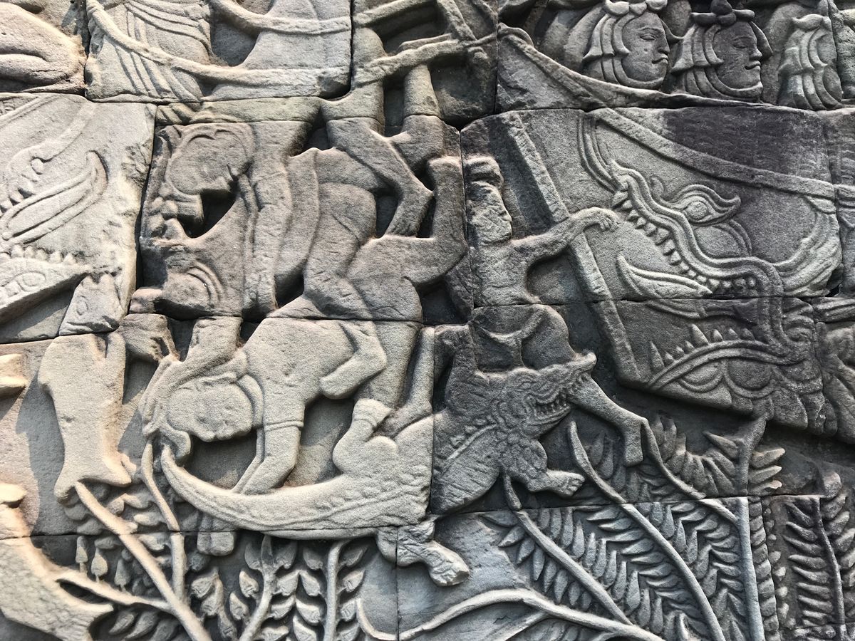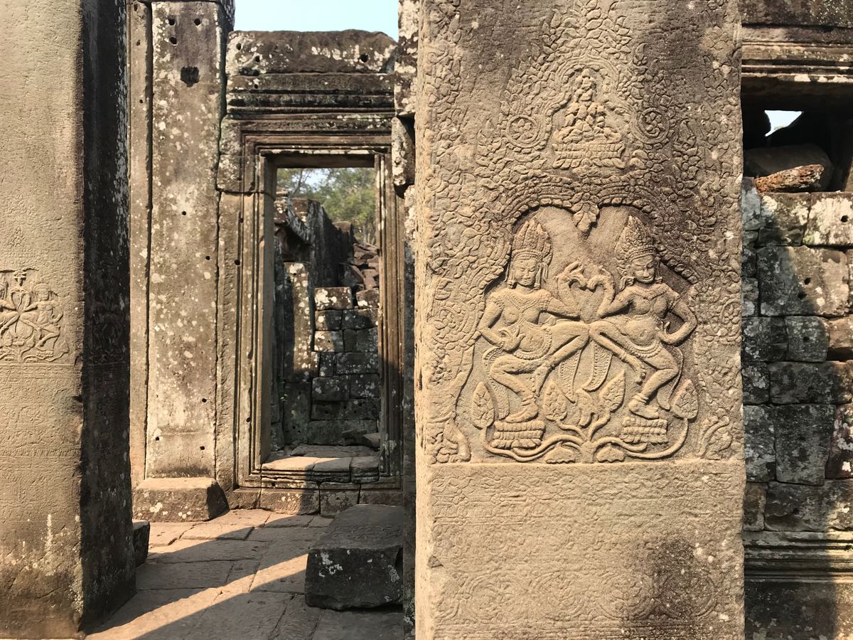 一度ホテルに帰って朝食を取り、アンコールトム、タプロームへ。彫刻のヒンドゥー教や仏教の話、建てられた背景など、ガイドさんの知識量と、それを日本語で話せることにただただ驚きました!(しかも留学経験はないとのこと)