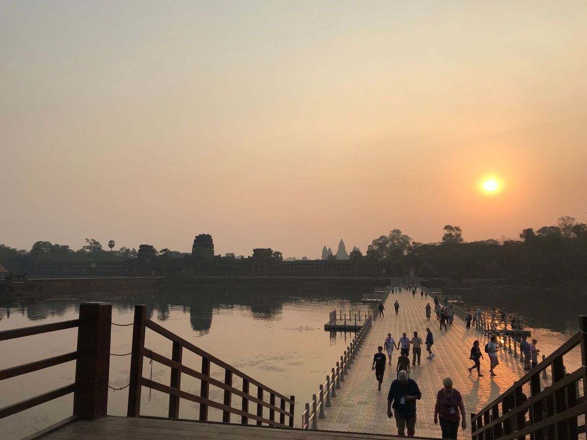 アンコールワットで朝日鑑賞オプションを選択しました。朝日は季節によって綺麗に見える場所を選んでくださっているようです。待っている間はカンボジアの恋愛や結婚事情などをお話ししてくださり、楽しく過ごせました。