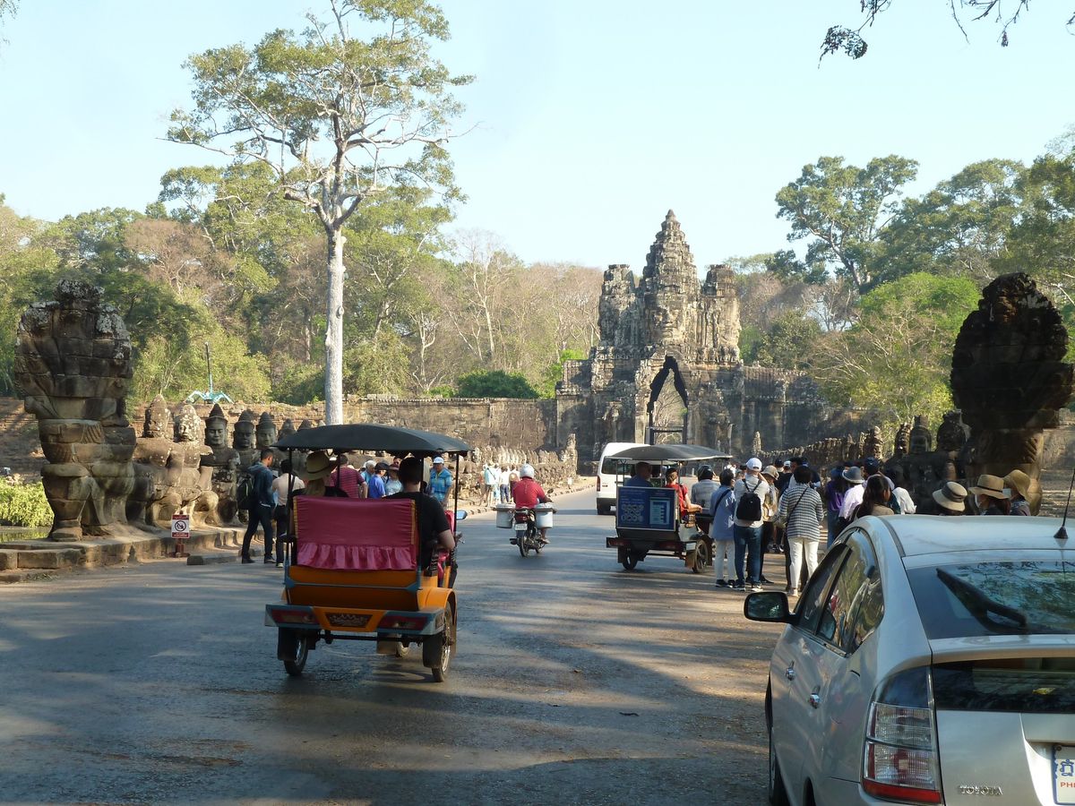 2月21日、夫婦で参加してきましたが、コロナウイルスの影響で某大陸の方々が来られてなかったため、どこも空いてて待ち時間なく観光するのには良かったです。午前8時ホテルのロビーで待ち合わせ、ちゃんと時間前に迎えにきて下さってたので朝から気分よく出かけられました。順番としてはアンコールトム→タ・プローム→昼食→アンコールワット→プノンバケンとなります。アンコールトムはレリーフが凄く綺麗で修復のため入れない場所もありましたが満足できるものでした。タ・プロームではアクシデント発生、写真を撮るのに夢中になっている隙に、背中のリュックを開けられ→サイフをスラれ→お札のみ盗られ(ドル札と万札で700ドル盗られました)→財布は其処ら辺に廃棄(たまたま後方から来ていた日本人の学生さん達に拾ってもらいクレジットカードと財布のみ戻りましたが、前日にその学生さん達の1人もスリにあったそうです)。ここは『トゥームレーダー』のロケ地だったとかでしたが、心ここにあらずであまり記憶にありません(涙)。気持ち切り換え昼食は道中にあるオシャレな感じの食堂でした(食事代はツアー費込み、飲み物1本のみ注文必要→田舎でカード使えず、現金スラれてましたのでガイドさんにお借りしました)が、カンボジア料理+クメール料理+タイ料理のランチは私達夫婦には合わず、あまり食べられませんでした。午後からは念願のアンコールワット(午後からの方が写真写りがいいので午後からまわるそうです)。とにかく階段が多く広くて足の疲労度МAXでしたが、さすがの規模でとても感動しました(ここにはお節介なボッタクリがいて、写真を撮ってやるとか中を案内してやるとか言って後々お金を請求してくるそうです。実際、私も声をかけられ断ると『バカ』と言われました)。最後のプノンバケンはそれまでのどこもが空いててサクサクまわれたおかげで早く着き過ぎ、日没まで時間があったのと、他の遺跡で満足してたのがあったので遺跡の頂上で写真だけ撮って下りました(ダラダラとした山上りになりますので夕方まで体力を残しておかないとしんどくなります)。その後、ツアーにはなかった交換レートのよい両替所でドルに換金、18時前にはホテルに届けてもらいました。1度体験してみたかったトゥクトゥクは気温35度の中でも風が爽やかで気持ちよく、乗り心地も思ったより悪くなく、また乗りたいと思いました。皆さんにも、ぜひお薦めします(前の車やトゥクトゥクの発した埃をまともに浴びますのでその覚悟のみ必要です・笑)評価が★4つなのは個人的にスリにあったからです。これから行かれる皆さんも後方にも注意が必要です。