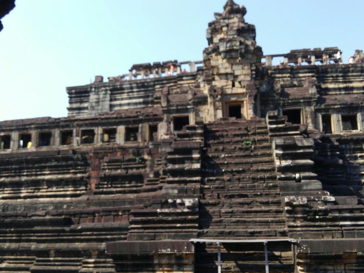 また、行程に書いてあるアンコール・トムの遺跡巡りですが、ライ王のテラスはほとんど見学できず端っこだけ見たくらい。もっと近くまで行ってじっくり彫刻を見たかった。ピミアナカスに至っては、そもそも立ち入らないので遠くから眺めたくらいでした。バイヨンの中央部は2020年1月から修復のため立ち入れなくなっているので、あの四面仏は間近で見ることはできませんでした。