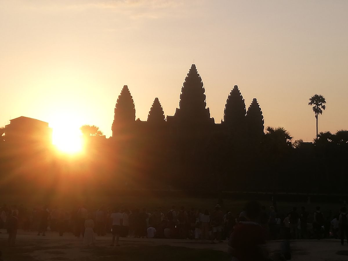 アンコールワット観光はまず朝早く出発してアンコールワットの後ろからの日の出を鑑賞したが、非常に幻想的でした。