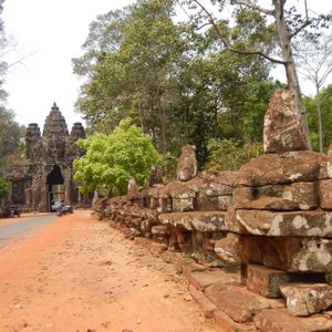 とても暑かったのですが、アンコールトムの遺跡を歩いているときには、歩いた先に車が待っていてくれたりと、ガイドさんが常に運転手さんに連絡をして、すぐに車に乗り込めるようにしてくれました。元来た道を戻らなくてよいのは、暑いので助かりましたし、さすがよく考えてあるなと感心しました。