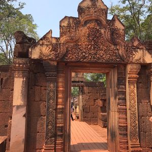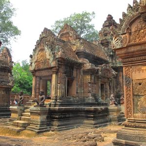 少し遠方になるので、ツアーでなければいけないし、実際行ってみて、アンコールワットやアンコールトムの様な灰色の砂岩とは違う、赤茶色の遺跡と細かく美しい彫刻にほれぼれしました。