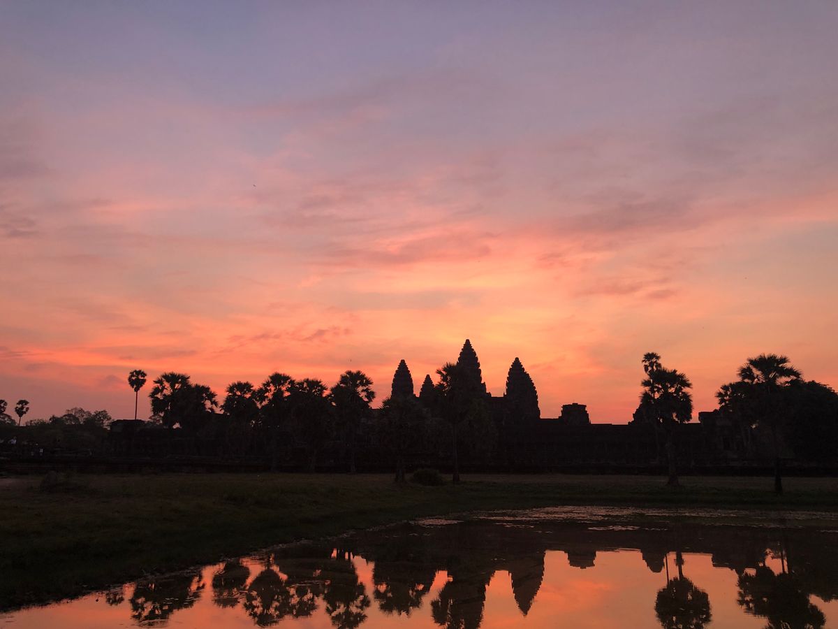 その後、アンコールワットで朝日鑑賞をし、朝日に生える遺跡がとても素敵でした。