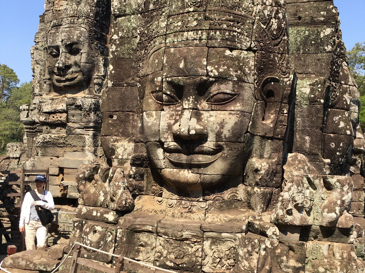 朝食後のアンコールトムも圧巻!顔、顔、顔!今も修復の続く歴史ある遺産を前にすると、自分自身が払った入場料が安く感じてしまうほどです。お昼ご飯は可もなく不可もなく。お昼休憩後のアンコールワットは観光エリアが広すぎるため、ガイドさんが観光ポイントを絞り説明してくださり、歩き疲れることなく楽しめました。晩御飯のアプサラショーも楽しめました。ありがとうございました。