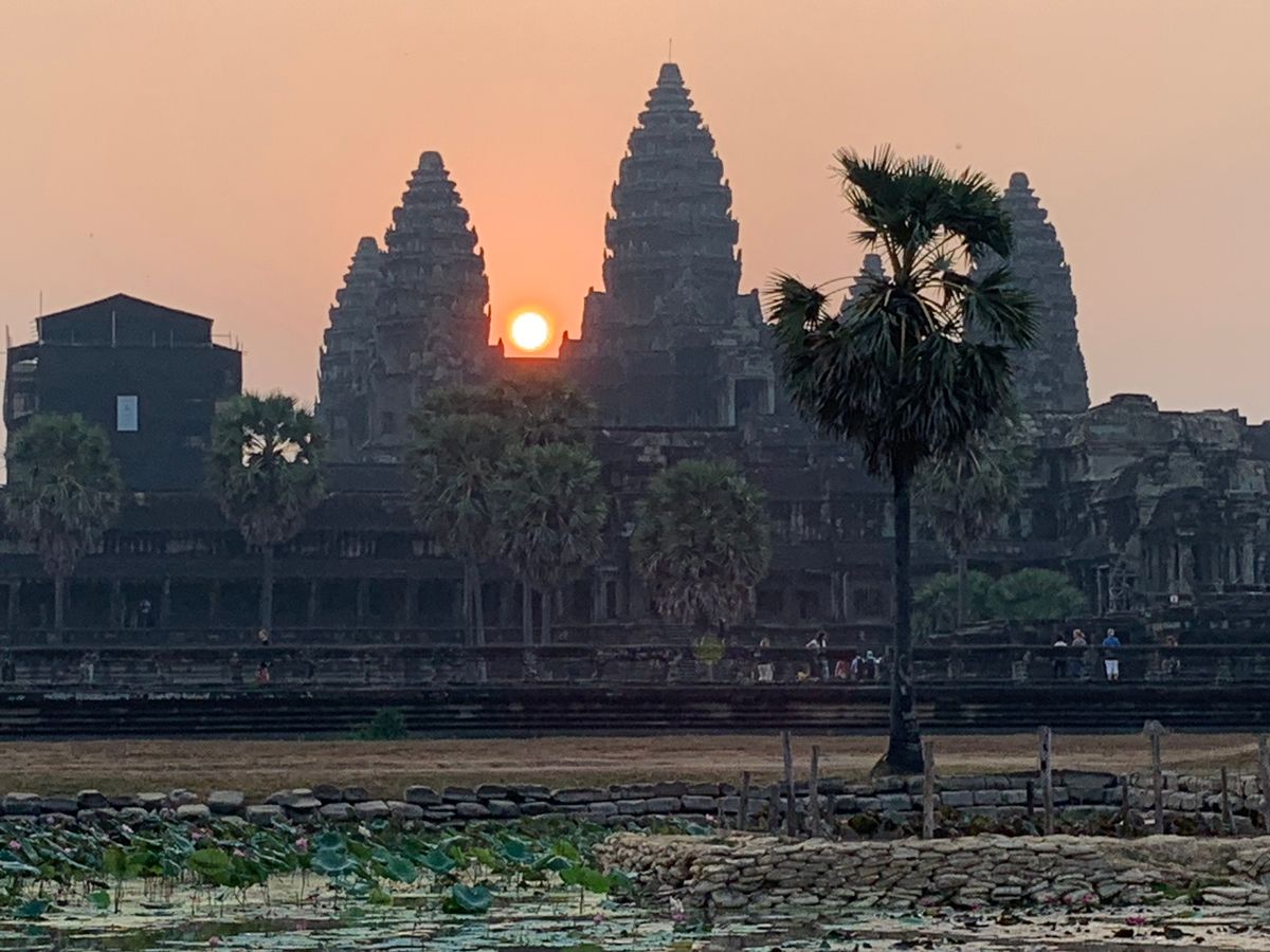 私は2度目のカンボジア。アンコールワットでしたが、以前との変化を感じながら、充実の1日を過ごすことが出来ました。朝陽観賞~夕陽観賞まで1日でやってしまうのは、なかなかハードですので、ゆっくり回りたい方は貸切ツアーをオススメします。乾季ですので、燃えるようなオレンジ色のまんまるな太陽がとても綺麗でした!雨季の朝焼け夕焼けもまた美しいので、どちらの時季でもそれぞれの楽しみがあると思います。ガイドさんが気を利かせて写真スポットで撮影してくれますので、いつもは景色ばかりの私のカメラロールに適度に人物も加わり、その充実さが伺えますw 初めてのアンコール遺跡にはマストなツアーだと思います!