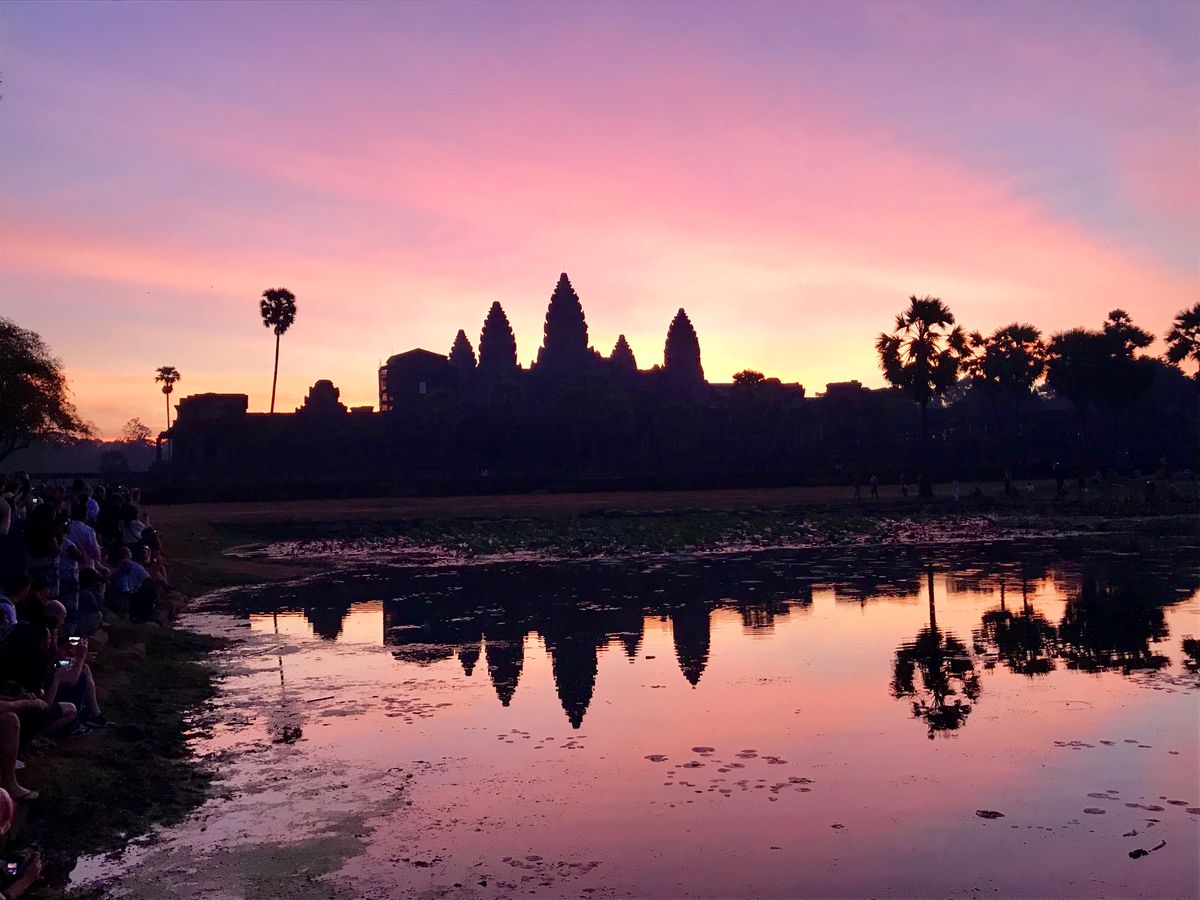 まだ暗いうちから、懐中電灯を持ちながら目指したアンコールワットの朝日。