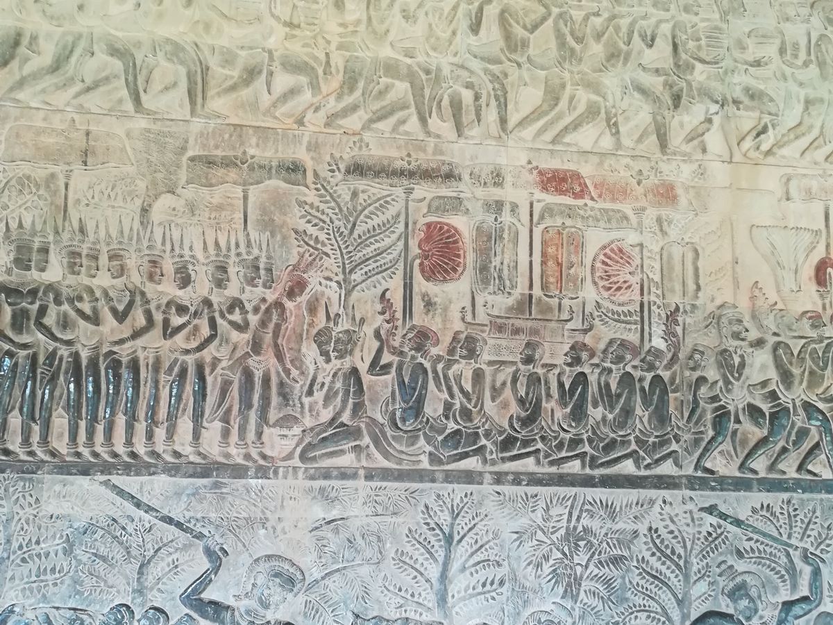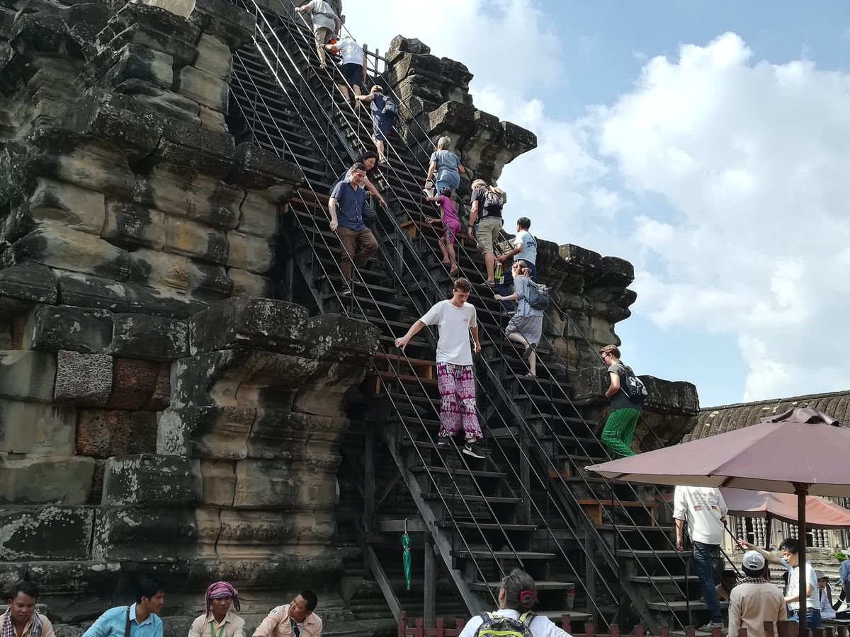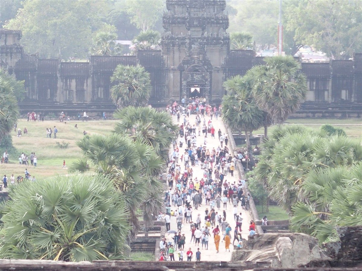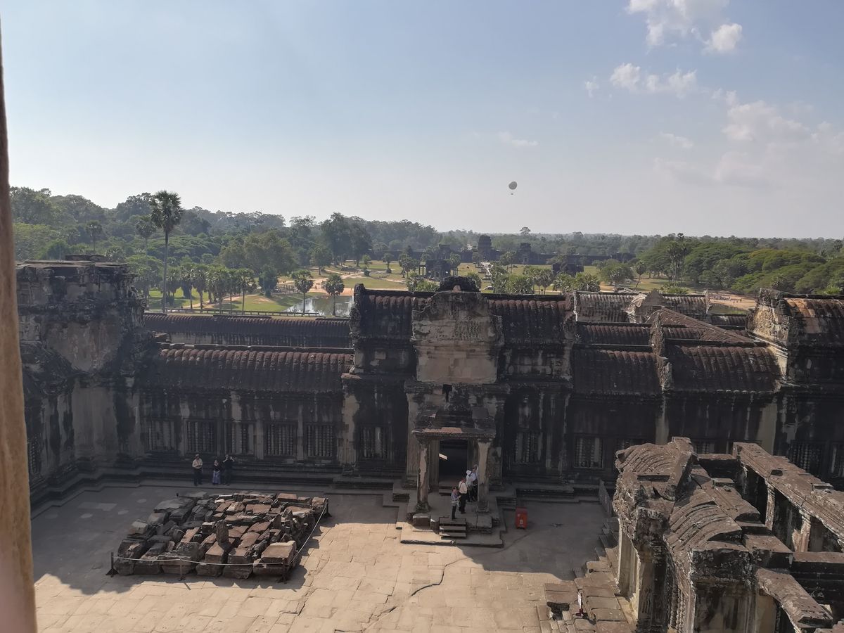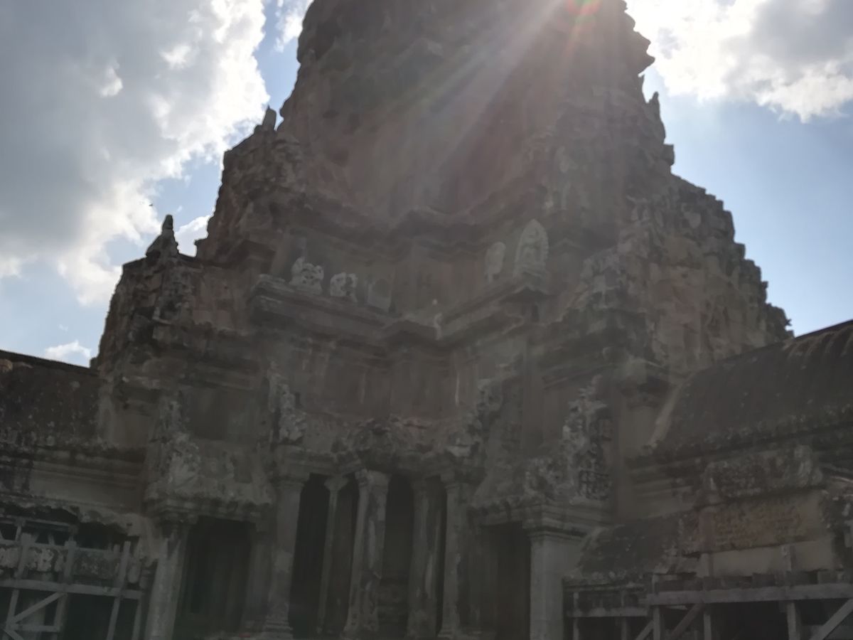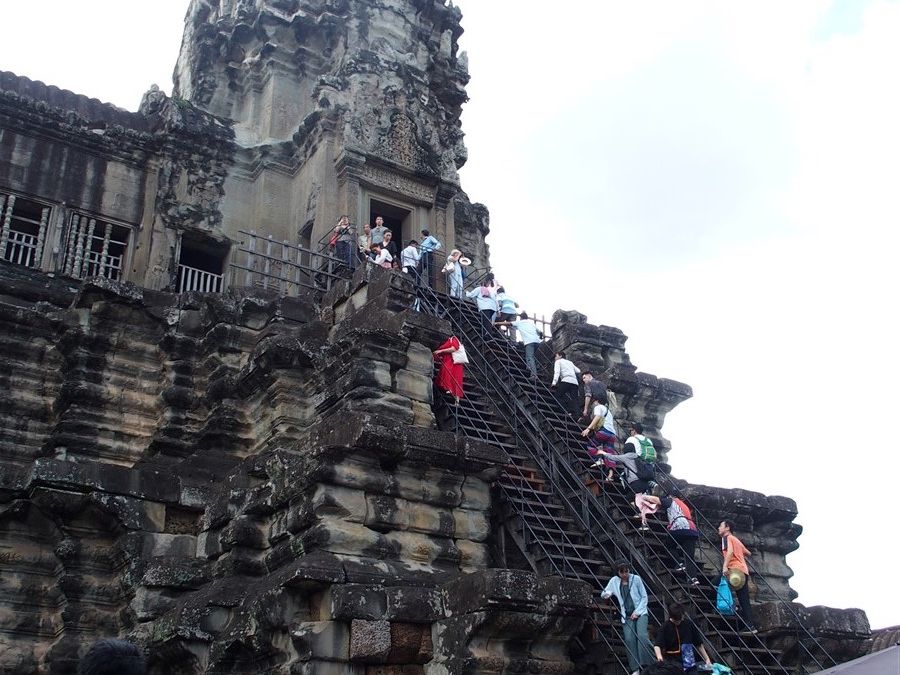 その後は、再びアンコールワットに。回廊の壁画の猿と悪魔の話など、興味深い話が色々聞けました。また、アンコールワットを登った上から見る景色は素晴らしいです!逆光の為、写真には残りにくいですが、、笑