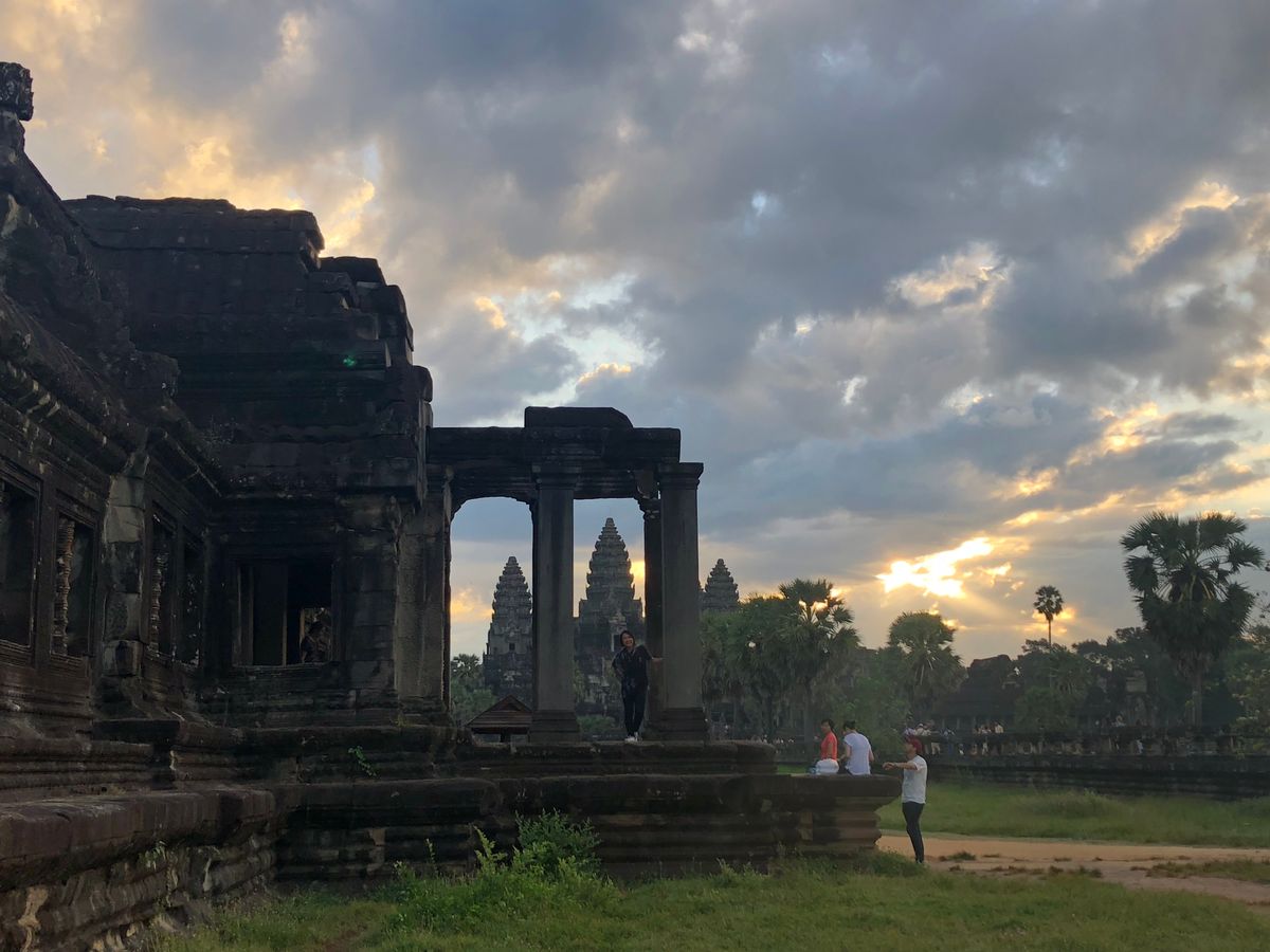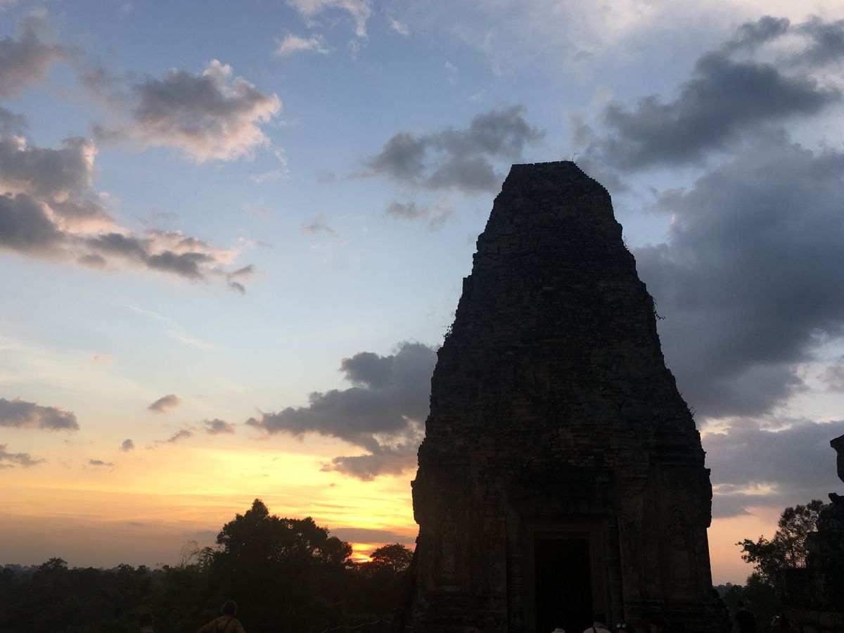 アンコールワットに戻り夕日が沈むのまってたらスコール。