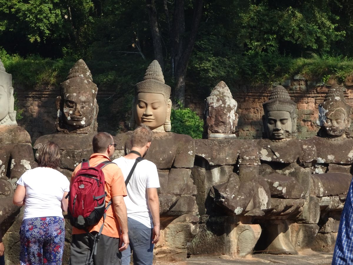 一度ホテルに戻り、8:00に再ピックアップしてもらったときは、たまたま自分たち二人のみでラッキー。コースに沿って見て行きましたが、ガイドさんの説明があると歴史的背景も分かるのでおすすめ。二人だったからか、ガイドさんおすすめポーズで撮影してもらい、楽しい写真ができました。午後からは、また8名に戻り、昼食後マッサージや買い物など。私たちはマッサージに参加し、いい休憩になりました。15時から2時間くらいアンコールワット内を見てまわり夕日鑑賞へ。1日周り続けるのは暑さと体力的にも持ちそうにないので、トータルいいツアーでした。あまりツアーは好きではないのですが、このツアーは参加してよかったです。アンコールワットに自分たちだけで行くのは不安です。