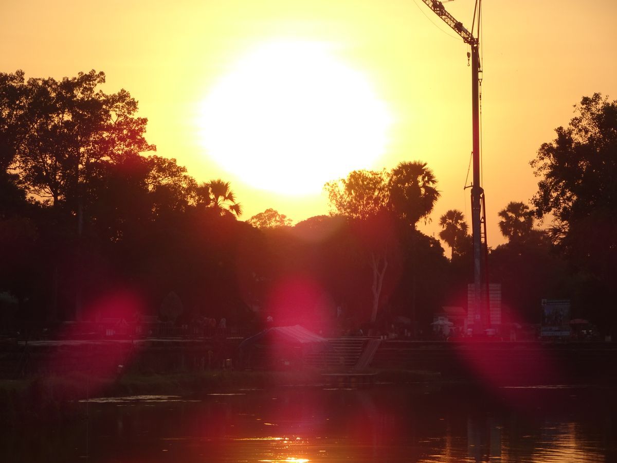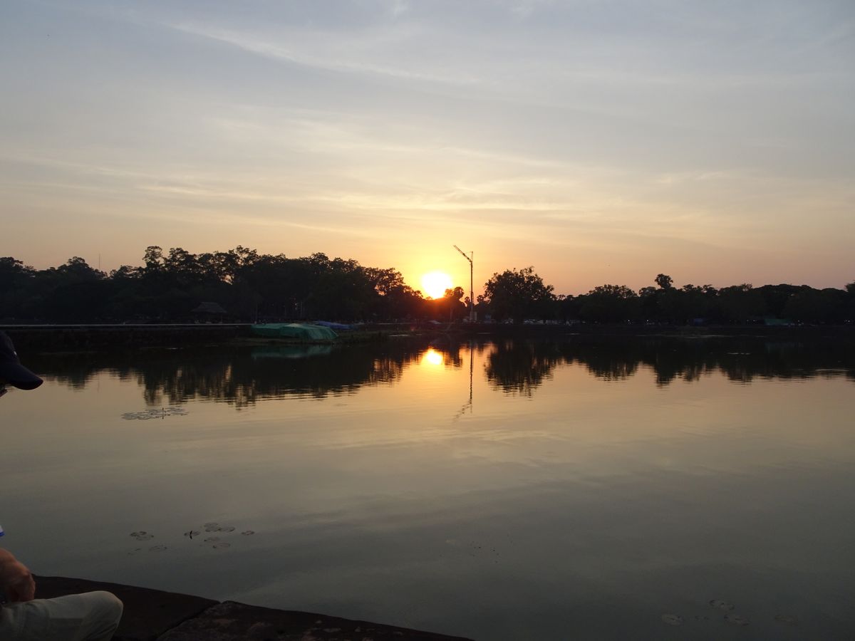夕日鑑賞ですが、アンコール遺跡の背後に沈む夕日(遺跡が赤く色づく瞬間)を見られるのかと思っていましたが、遺跡に登って遠くに沈む夕日を見るだけでした。