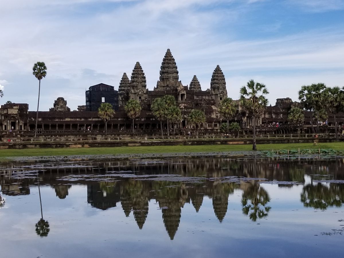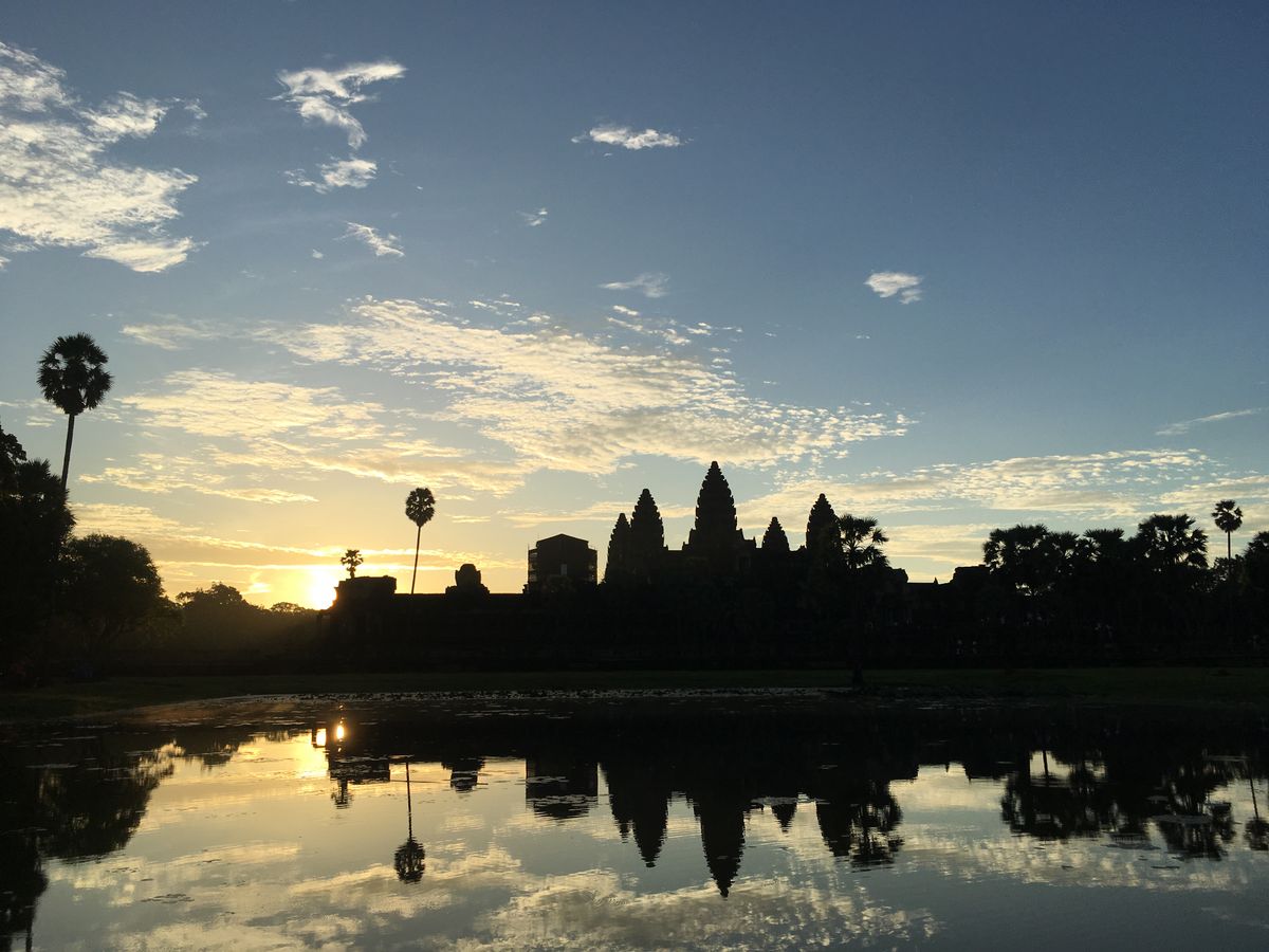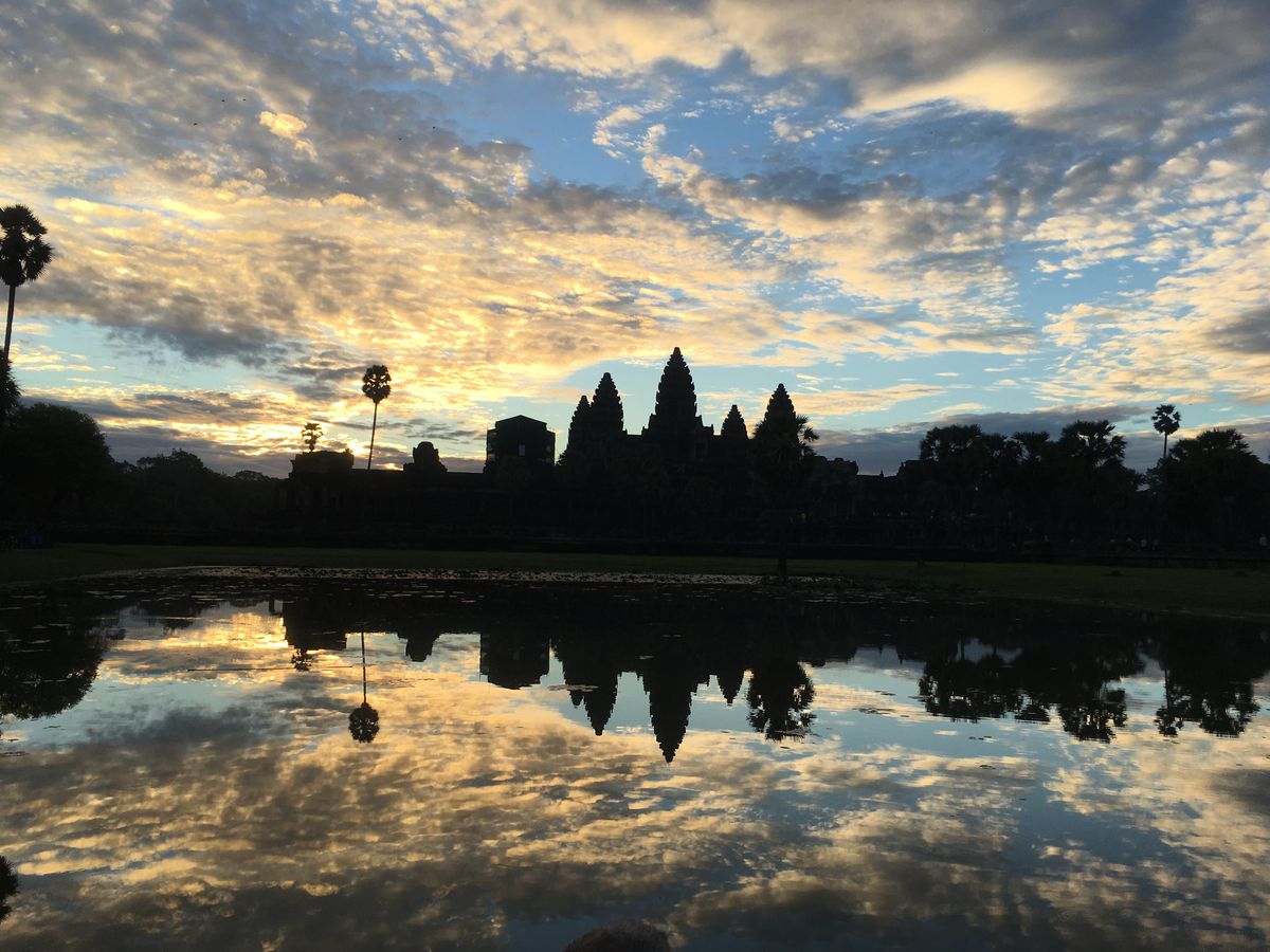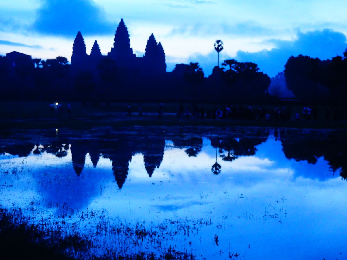 天候の関係で朝日は見られなかったのですが、夜が明けてくる幻想的なアンコールワットの景色に圧倒されました。