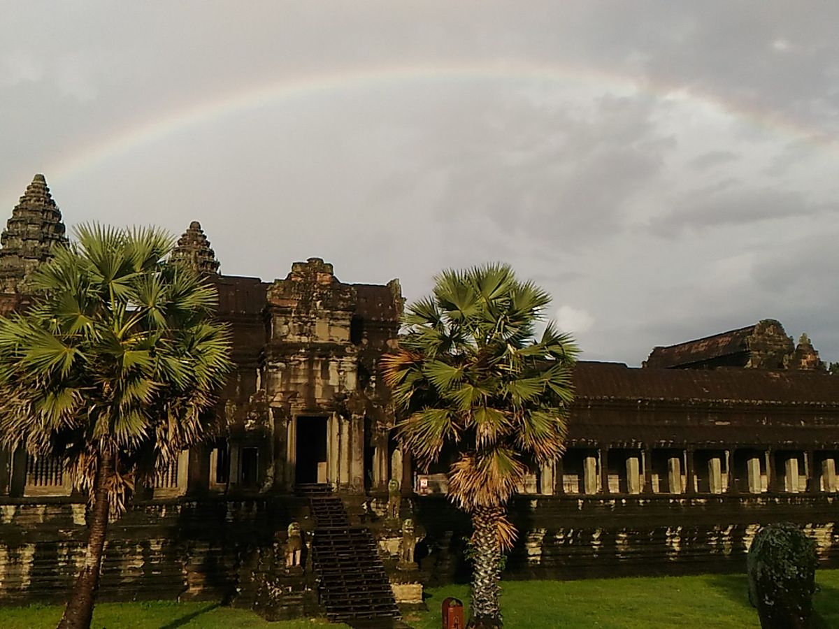 投稿いただきましたお写真の虹、きれいに撮れていますね。アンコールワット遺跡は雨季は観光には不向きな時期ですが