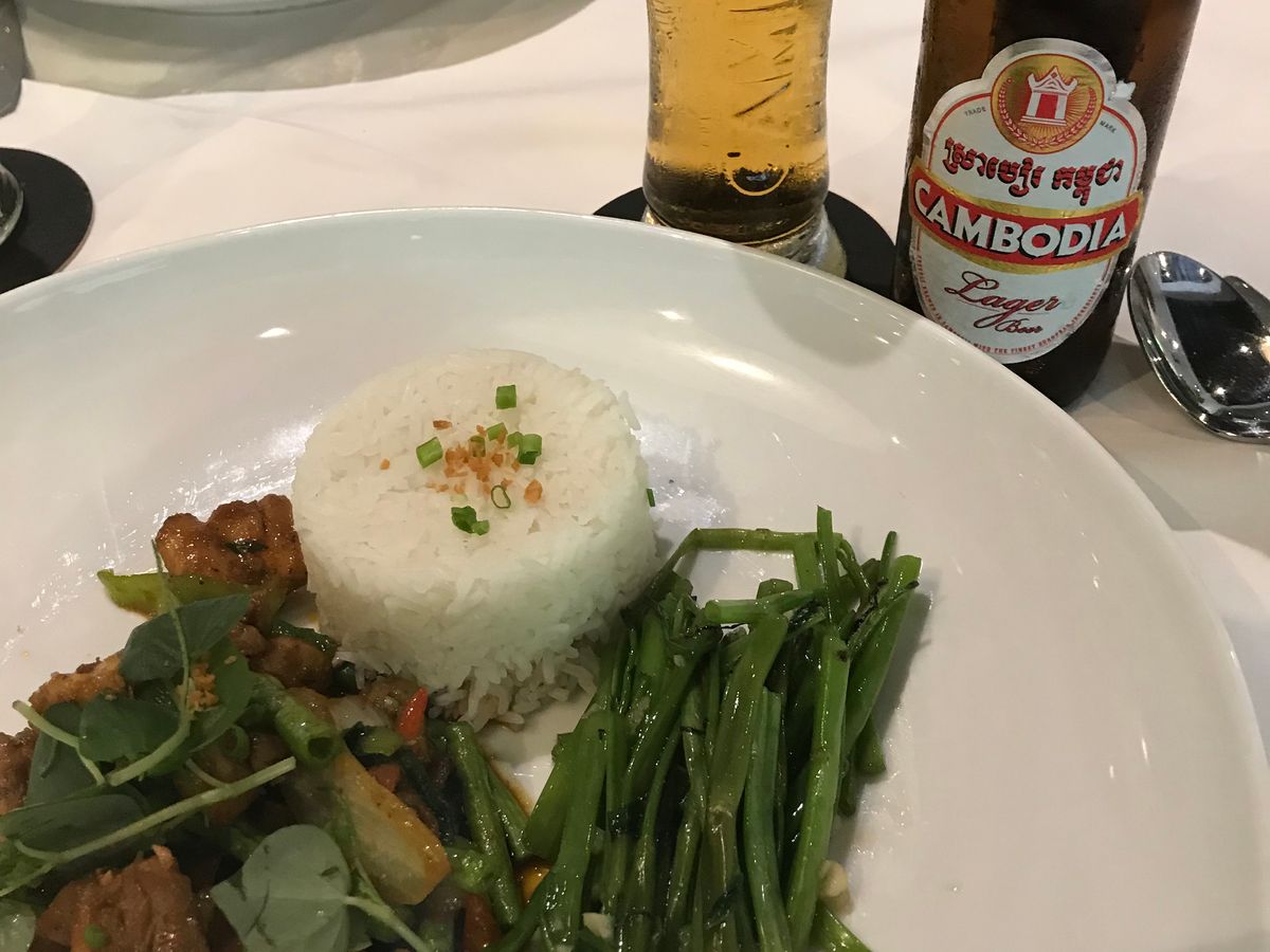 朝日は曇り気味で心配でしたが、何とか見れました。アンコールワットの中央の塔から太陽が出る様子を、12世紀の人も見たかと思うとちょっと神秘的でした。夕日は雨で残念ながら見れませんでしたが、Chef D'Angkorのランチもビュッフェディナーも量がふんだんで、魚をまるごと蒸したもの、蓮の実の入った料理、生春巻き、ドラゴンフルーツなど果物と選択肢はたくさんありました。