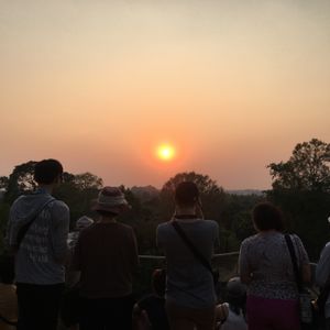 アンコールワット観光を全部詰め込んだようなツアーでした。早朝、朝日を見るために各宿泊ホテルまでピックアップに来てくれ、見事にきれいな朝日を見ることができました。その後、それぞれのホテルに一旦戻ってくれ、朝食を取ってからツアーが再開。午前中はアンコールトム、タプローム、昼食後、アンコールワット第三回廊に上り、第一回廊の壁画の説明を行ってくれました。夕方、プレループでのサンセットに行きました。前日と同じ場所でしたが、諦めていたらサンセットも少しでしたがきれいな景色を見ることができました。
