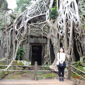 朝5時前にホテルへお迎え、アンコールワットのサンライズからスタートです。一旦ホテルに戻って朝食。午前はアンコールトム、バイヨン寺院、タプロームなどを周り昼食はカンボジア料理。美味しかった。その後アンコールワットを満喫。夕食はなんでもありのバイキング、アプサラダンス鑑して8時半終了。このツアーに参加すればとりあえずシェムリアップ観光の目的は達成されます。この内容でこの値段?というくらい名実ともにおなかいっぱいのツアーでした。ガイドさんも良かったです。