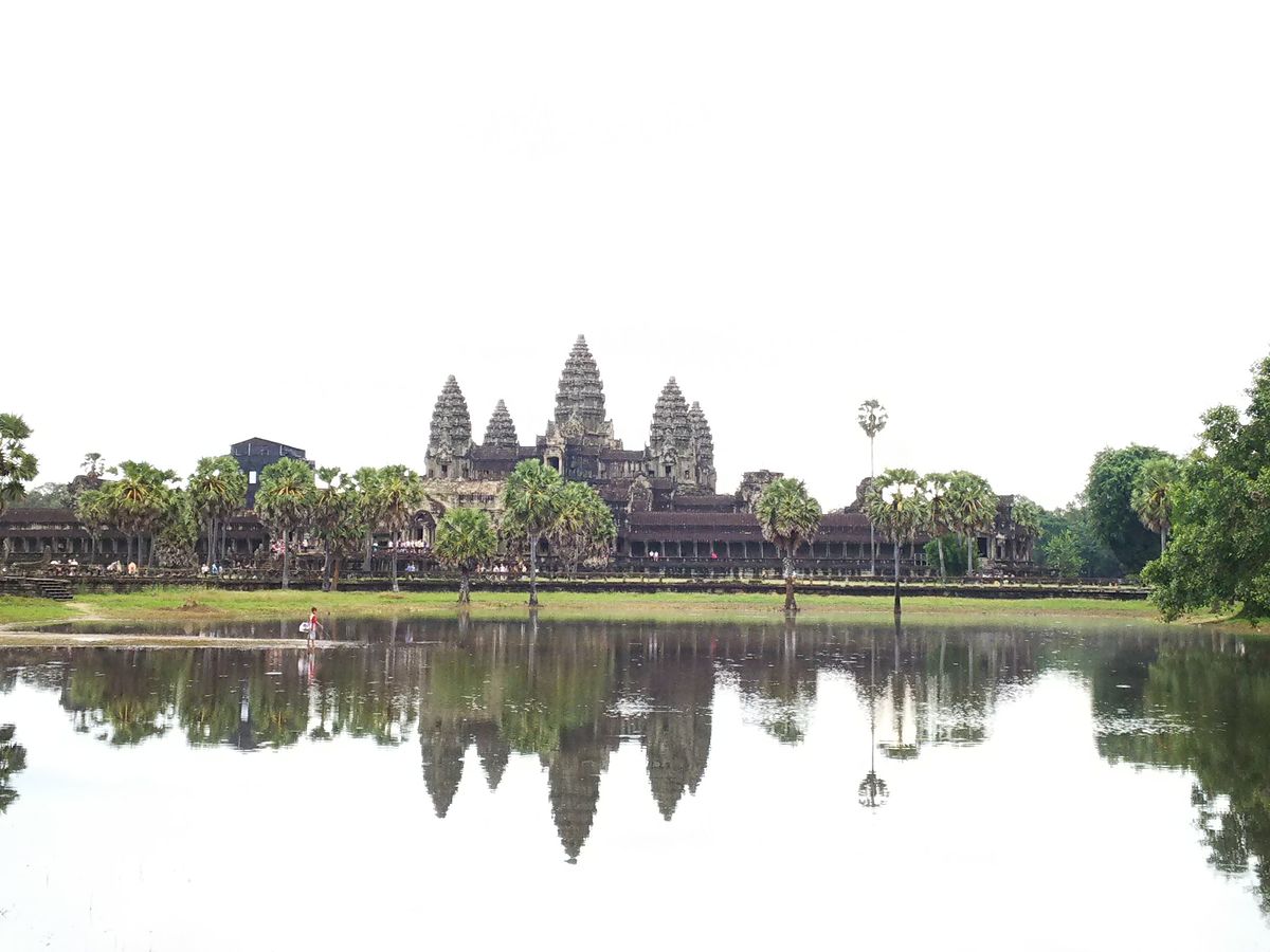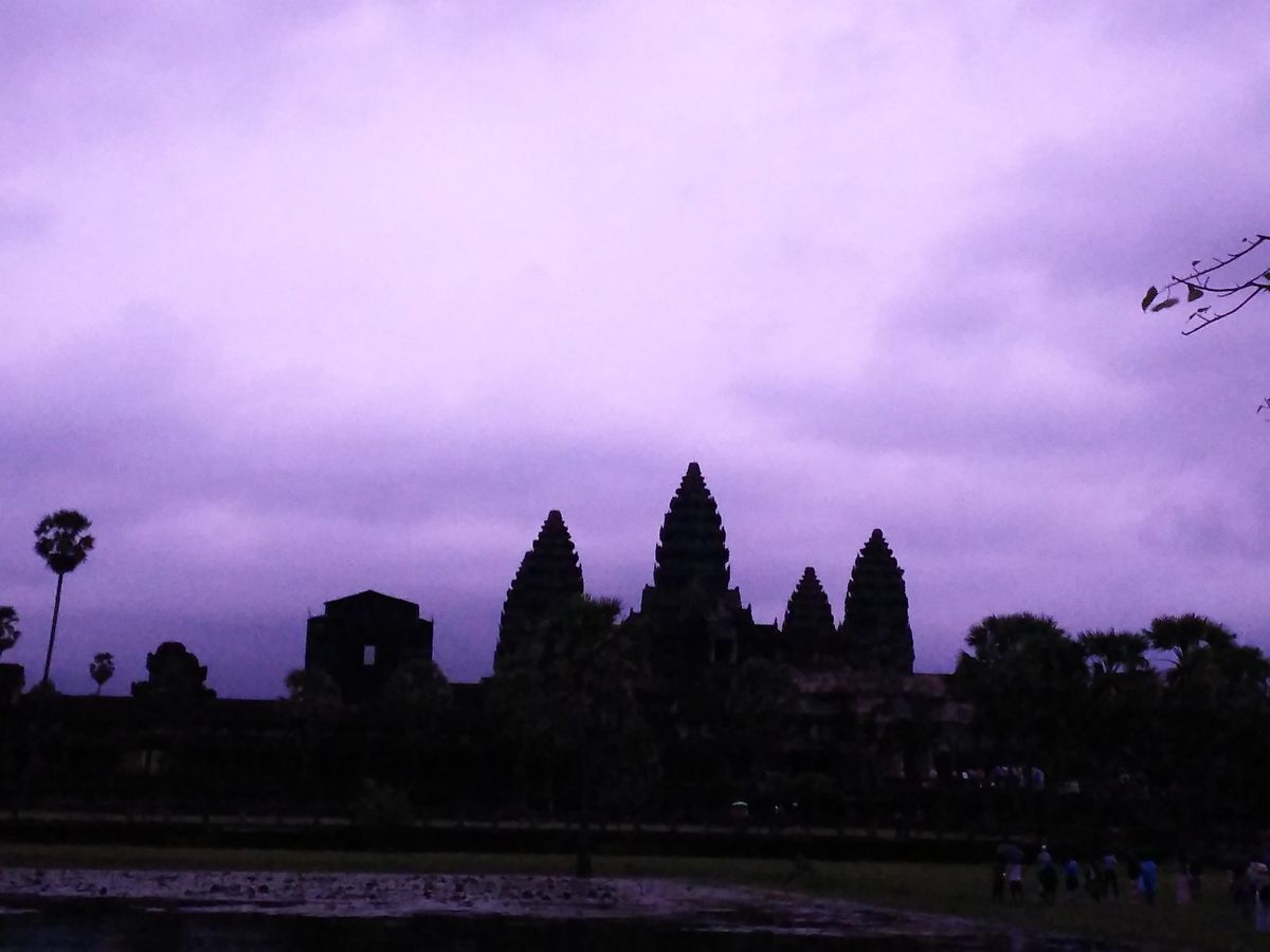早朝からバスでアンコールワットに行き、朝日を見る予定でしたが、ツアー参加者全員のアンコールチケットを取り終えて向かった頃には、かの有名な池に映る朝焼けのアンコールワットには間に合いませんでした。