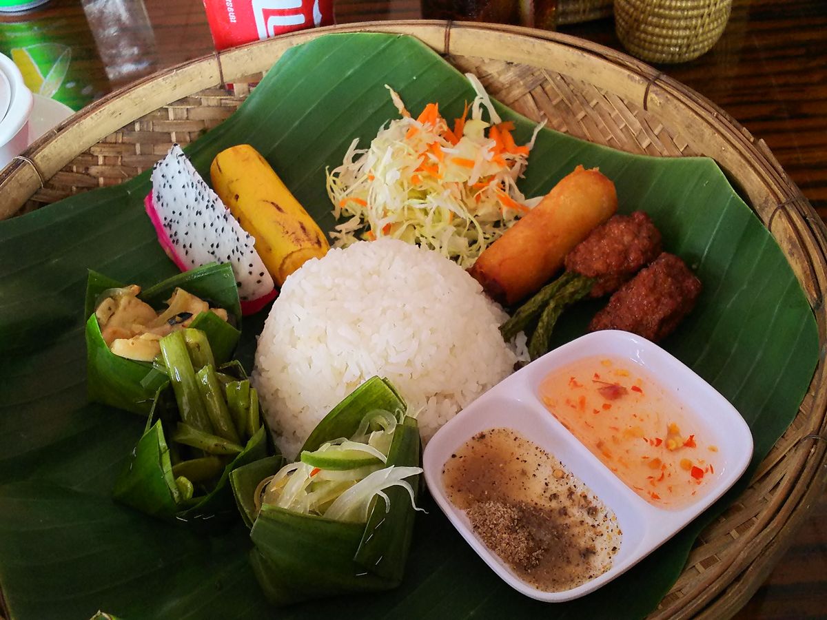 お昼ごはんはゲストハウス付きの食堂で、クメールセットをいただきました。少しずつ色々食べられて、美味しかったです◎。男性には量が少ないかもしれません。