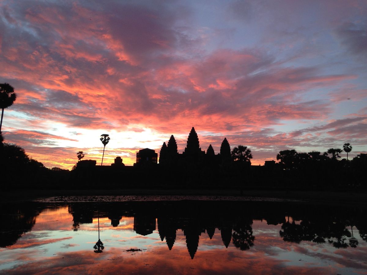 カンボジア旅行で定番のアンコールワット。そこで見る朝日は一味違います。美しい。この一言に限ります。おすすめです。