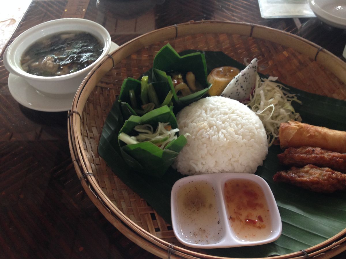 昼は10人ほどの円卓に料理が置かれ、それを取り分ける形式です。