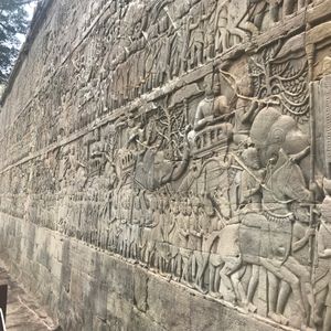 アンコールトム、アンコールワットと壁の彫刻の意味などご説明いただく機会が多いメインの観光スポットだったため、もし団体だと聞きそびれてしまうこともあったかと思います。専用ガイドだったため、二人のペースに合わせてご説明、そしてたくさん写真を撮っていただきました!撮影スポットを知っているだけでなく、ポージング指定なども完璧で、非常に思い出深い1日になりました。途中雨がふって夕日鑑賞が出来なくなってしまったのですが機転を利かせて別の場所に連れて行ってくださったのもありがたかったです。五日間毎日ツアーを入れてまわったのですが、この日が1番良かったですし、ガイドのテットラーさんには感謝です!