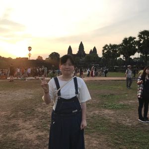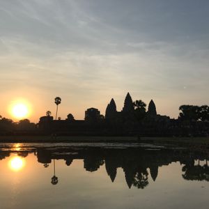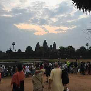 ラッキーなことに、この日の参加者は私たち夫婦だけ。おかげで途中で2回もホテルで小休息を取ることが出来ました。朝は4:30にホテルロビーに集合してアンコール遺跡群の共通入場券を買いに。とっても混んでいてここで30分くらいは使ったかな?そしていよいよアンコールワットへ。神秘的な朝日を見るためにたくさんの人が集まっていました。お土産物を売ってあるか幼い子供達が印象的でした。ホテルは一旦戻って朝食をとり8:30まで休憩。午前中はアンコールトムとタプローム、昼は指定のレストランでクメール料理を満喫しました。私たちはタイ在住で辛い食べ物に囲まれていますが、クメール料理は全然辛くなく日本人にはとても親しみやすい味の料理だと思います。ホテルに戻る途中有名なアンコールクッキーに寄ってもらいお土産を購入。少し昼寝をして午後はアンコールワットへ。第3回楼まで満喫し、夕日を見るためにプレループへ移動。最後はアプサラダンスショーを見ながらのディナーをとってホテルへ送ってもらいました。ディナーはバイキングであまりいいレビューを書いていない人も多いですが、私には十分美味しく、バラエティに富んだメニューで楽しめました。ガイドさんは日本語がとても流暢で、それぞれの場所で写真撮影もしてくれ、フォトスポットをよく知り尽くしていました。やはり日本語で説明してくれると理解度が違いますね。おかげでとっても有意義な1日になりました。このツアー、本当にオススメです!