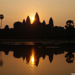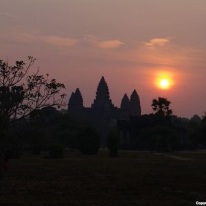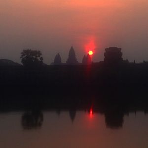 日の出と共にアンコールワットの雄大な遺跡がシルエットになって見えて来た。