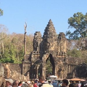 朝日を見るために真っ暗な中から出発。日の出の1時間前に到着したにも関わらず、アンコール・ワットには人。人。人。いいポジションは取れませんでしたが、素敵な日の出を見ることができました。この後、一度ホテルに戻り休憩。アンコール・トムから見学に行きました。日曜日だったためか、人が多すぎて蒸し風呂のようでした。人が多すぎて写真をゆっくり取ることはできませんでした。アンコール・ワットは第三回廊に上るために暑い中並ばなければいけませんが、上から眺めも良く、見に行く価値はありました。ガイドさんの説明はゆっくり聞けなかったのですが、それもしょうがないと思います。