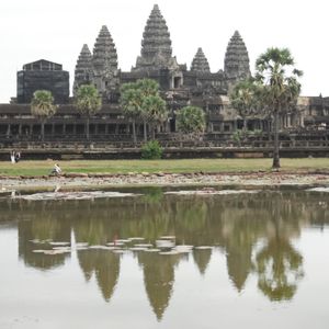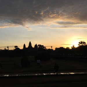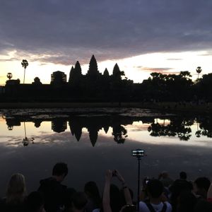 真っ暗な中、徐々に空が明るくなって、アンコール・ワットが池に浮かび上がるのはとても綺麗でしたが混雑具合がすごかったです。