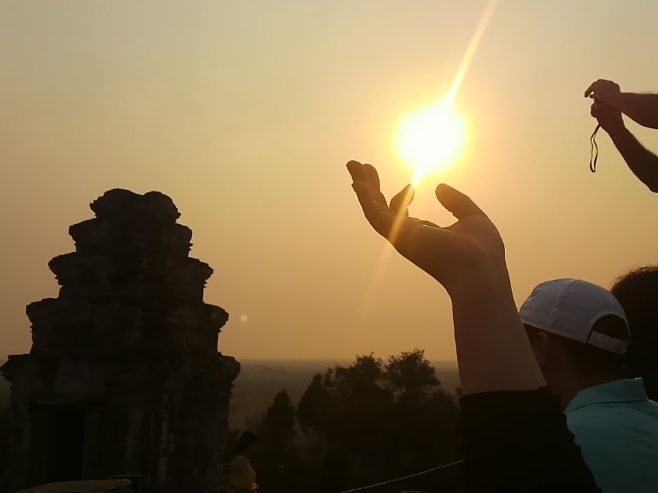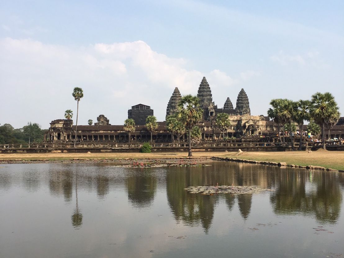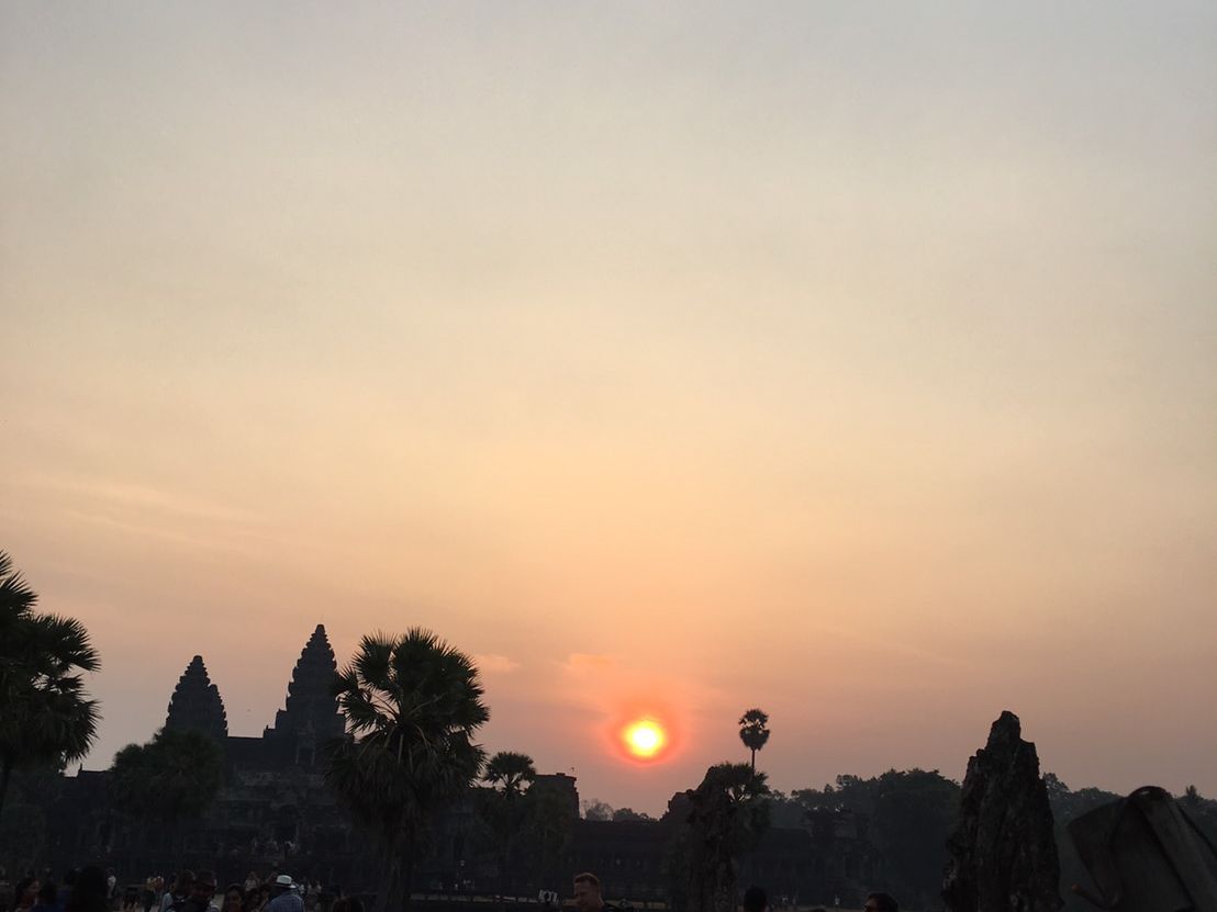 朝日のアンコールワット鑑賞は最高でした。暗闇からだんだんと浮かび上がってくるシルエットは美しく、朝日が現れた瞬間は感動ものです。ただその瞬間をカメラに収めようとする人ばかりなので、有名な鑑賞スポットからだとどうしても人混みやスマホの画面が移りこんでしまうのできれいな写真を撮るのは難しいかもしれません。