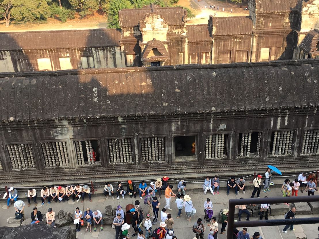 アンコールワットの第三回廊に上るのは1時間ぐらい並びましたが、その間、他のグループの方と仲良くなれて楽しかったです。