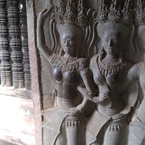 午後からはアンコールワットですが、雲行きがだんだん怪しくなり回廊を回っている間にスコールが。晴れてるのにザーッと雨がふったり、なんとも不思議な天気でしたが、雨のアンコールワットもうっそうとしていてステキでした。レリーフの説明をこれまた丁寧にわかりやすくしてくださいました。本当にわかりやすくてとても勉強になりました。
