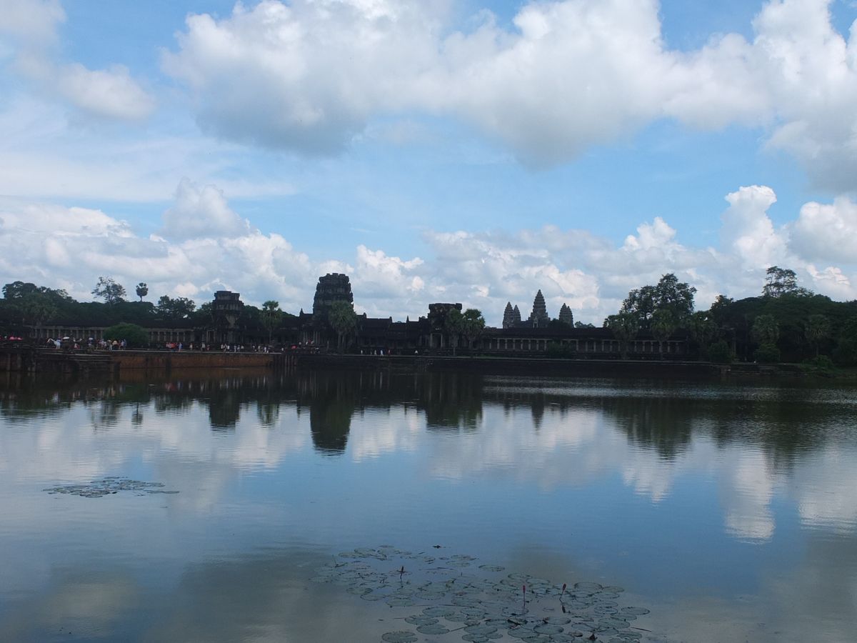 残念ながら、東の空に雲があって朝日は臨めませんでしたが、水面に映る綺麗な寺院の景色を堪能出来ました。ここでも、ガイドさんが一番美しく見えるポイントに案内をしてくれたので、綺麗な写真を撮ることができました。