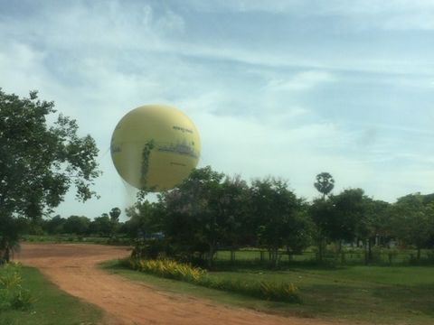 アンコール遺跡群を巡るためのチケットを購入後(希望者のみ)気球に乗って空から遺跡群を臨むアンコールバルーンに。楽しみにしていたのですが上空の風が強いとのことで残念ながら中止となってしまいました。