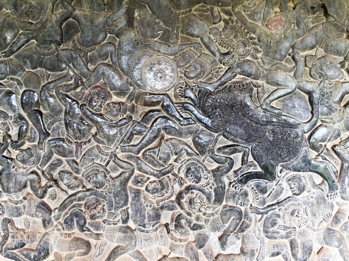 アンコールワットの彫刻はラーマーヤナ物語などのヒンドゥー教神話や