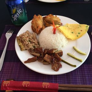 朝日を見た後に食堂で朝ごはんを食べたのですが、観光客向けのレストランではなく、いかにもアジアの食堂って感じが良かったです。