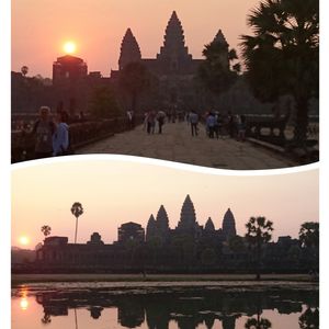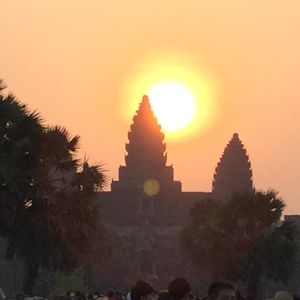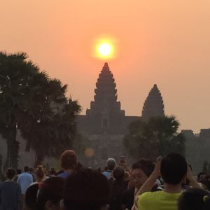 早朝からアンコールワットへの朝日見学ツアーへ。チケットも別の場所で販売さらていますが、ガイドさんが購入の段取りをふんでくれて迷わず買えました。同じツアーに参加される方もいらっしゃり、いくつかのホテルを回ってピックアップしていきます。日の出に間に合うかなと心配になりますが、全く問題なく間にあいました。ベストスポットをガイドさんが教えてくれ、アンコールワットのてっぺんから日の出がでるように見える場所で見学できました。一旦ホテルへ戻り朝食をとったあとに再び迎えに来てもらい、アンコールトムへ。想像以上にアンコールトムが綺麗で優雅な佇まい。中の彫刻も素晴らしかったです。続いてお待ちかねのアンコールワットへ。想像以上に中ぎ広く、要所要所を絞りながら見学へ。1日では回りきれないくらいの見どころ満載です。一個一個の彫刻に対する説明もきちんとして頂き、ただ見学するだけにはとどまらず、しっかりと勉強できました。最後に、タプロムに行き、自然と建造物のナチュラルな融合を楽しみ、1日のツアーが終了しました。中身が非常に濃く、暑いのもあって、多少体力が消耗しましたが、車はクーラーも効いていますし、ペットボトルの水も用意してくれており、至れりつくせりでした。