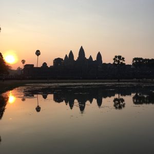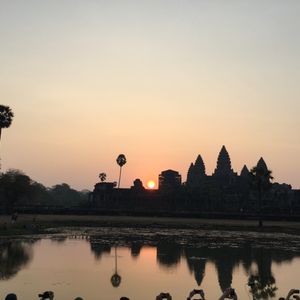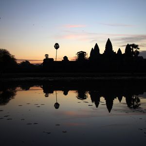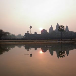 アンコールワットの日の出でしょうか?とても幻想的で素晴らしいの一言です。