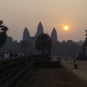 アンコールワットの夜明けは太陽もさることながら、アンコールワットのシルエットも