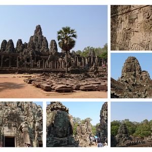 アンコール・トム、タプローム、アンコール・ワット、プノンパケンの夕日鑑賞・・・。シェムリアップの外せない見所全部を詰め込んだプランです。遺跡にはあちらこちらに無数の彫刻がなされていて、見ていて飽きません。ツアーでなかったら、時間を忘れて1箇所見るのに時間もかけてしまいそうです。ガイドさんはいろんな写真スポット把握していて、撮るのも上手くて、たくさんいい写真を撮ってもらえていい記念になりました。