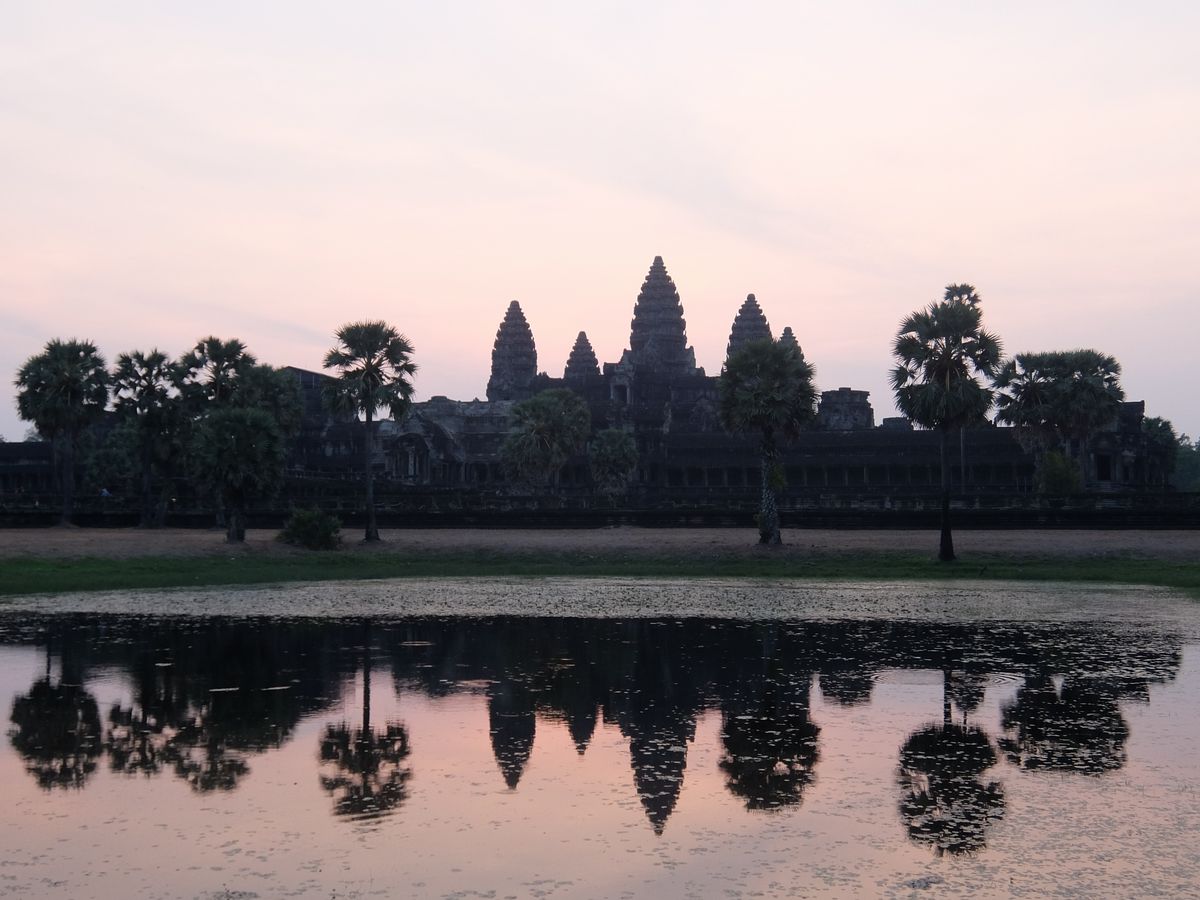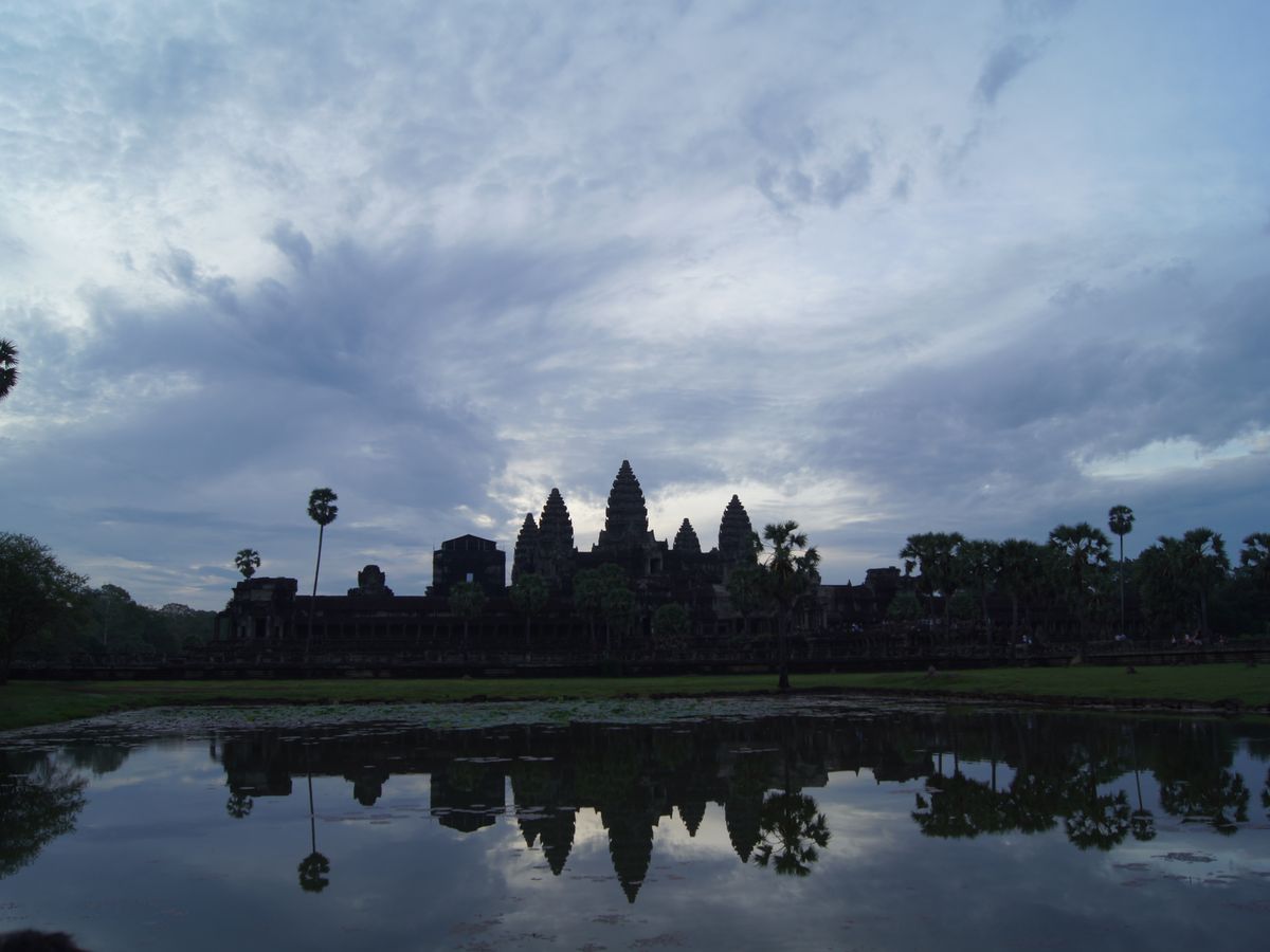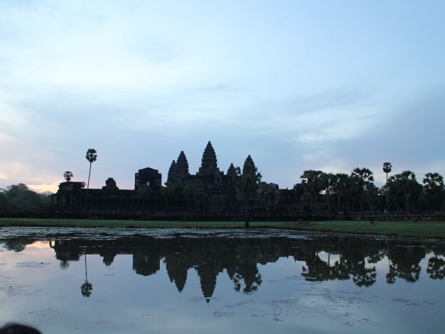 アンコールワットの日の出は曇り気味だったので、お日様の丸い形は見れませんでしたが、うっすらと明けて行く日の光に水面に映ったアンコールワットが素晴らしく美しかったです。